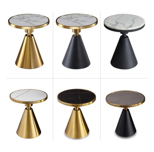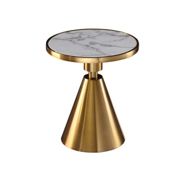 Golden stainless steel base white marble top round side table